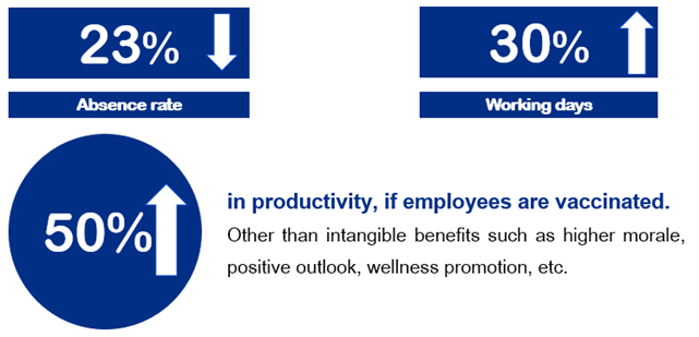 For most companies of all industry, the direct and indirect impact of Employee Health Care spending is the second highest expense after payroll.Insurance data shows that Influenza and Pneumonia accounts for the highest average claim amount. And both diseases are vaccine-preventable at a fraction of the cost incurred by corporates.